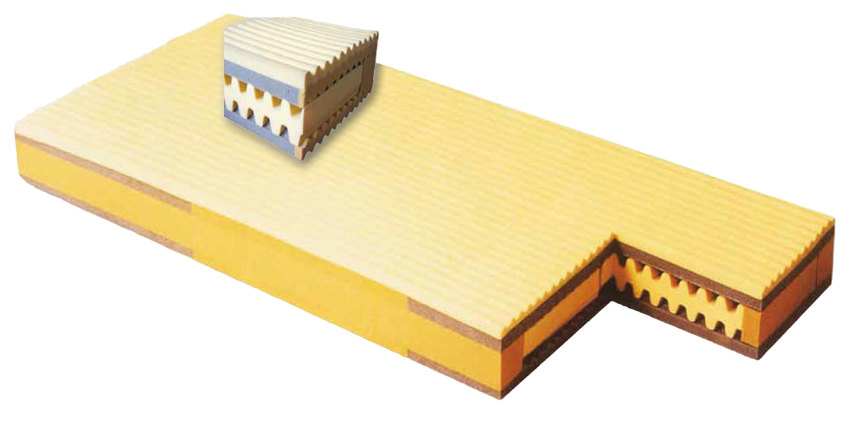 Die beidseitig wellenförmig geschnittene viscoelastische Oberfläche sorgt für eine gleichmässige Druckverteilung und hervorragende Anpassungsfähigkeit.